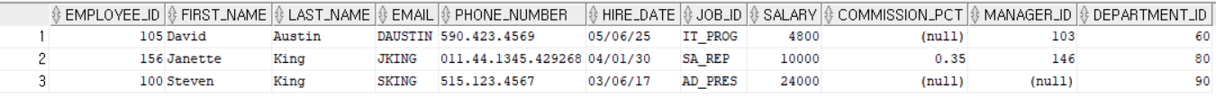 SELECT * FROM EMPLOYEES WHERE LAST_NAME IN ('King', 'Austin');