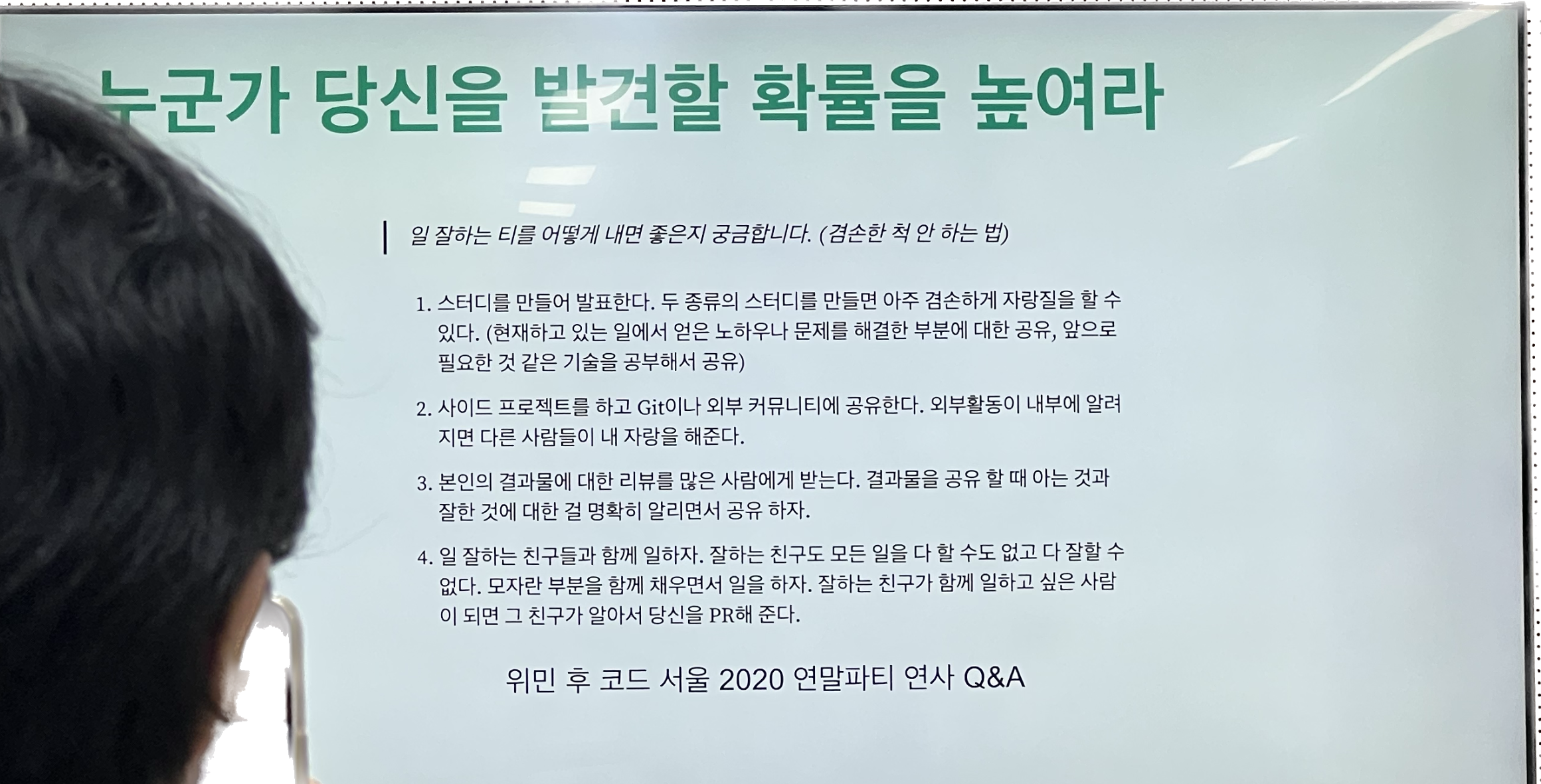 너무나 좋은 포인트였다. 당장 나만 해도 medium 에 포스팅된 글을 좋아하는데, 해외 면접관의 입장에서 이야기하니 더더욱 해외 플랫폼의 접근성이 와닿았다.
